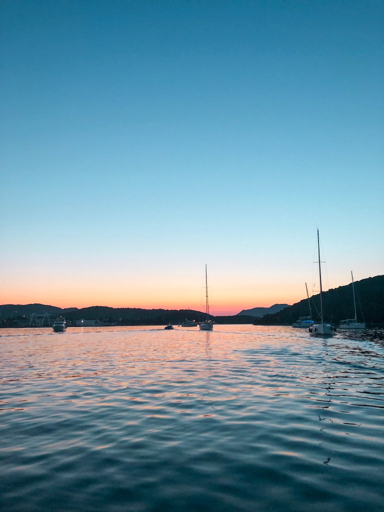 Ko se nadihamo svežega morskega zraka, se sonce začne počasi spuščati in čas je da se opravimo nazaj. Iz kajiča opazujem otok, medtem ko veslamo nazaj proti jadrnici. Zadnji topli sončni žarki ga naredijo še bolj bogatega in samega. Proti obali priskaklja srna in se čisto domače sprehodi po pomolu.